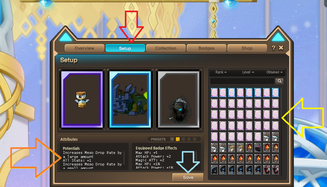 Shows All the Familiars youhave collected. Choose the Familiars with the stat or bonus you need and fill up your summon slots