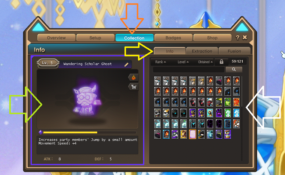 Where your current familiar collection is shown
