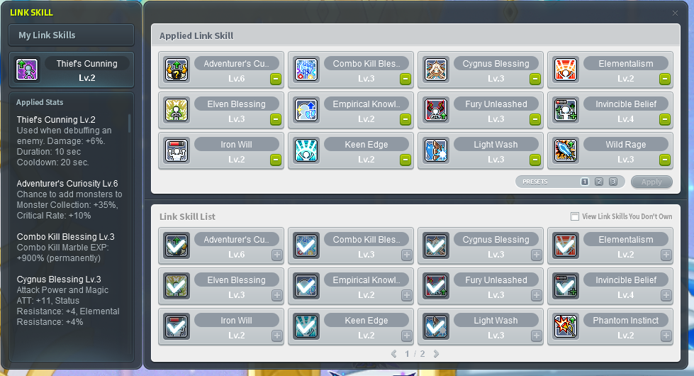| This Link Skill can be stacked up to 3 times, once for each unique Explorer Thief job character you have on this world. | |